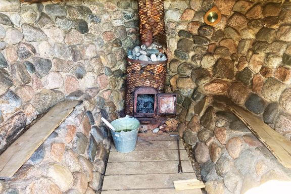 Otse mere kaldasse merekividest ehitatud koobassaun pakub mõnusat tava-